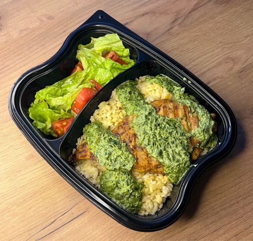 Куриное бедро в соусе сальса с рисом