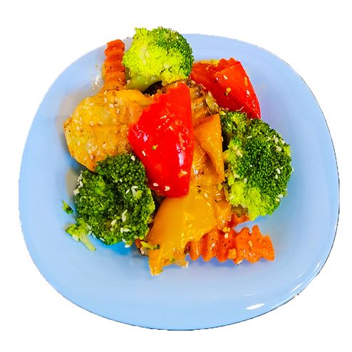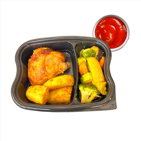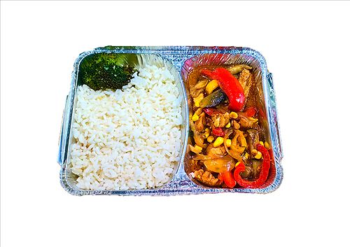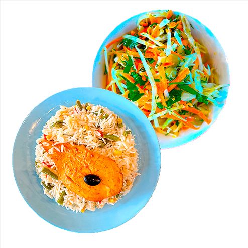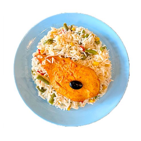 Стейк куриный с рисом и овощами